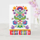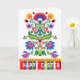 Vertical Happy Easter postcard with Folklore composition and two purple bunnies and Easter Eggs - Pysanki. Design inspired by polish folk-art from Lowicz region. The text inside is fully customizable. All you need is to sign at the bottom and unique Easter card is ready to make someone smile.
