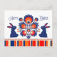 Happy Easter postcard with Folklore composition and a couple of blue bunnies with red ears. Design inspired by polish folk-art from Lowicz region. The text on back page is fully customizable. All you need is to sign at the bottom and unique post card is ready to make someone smile.