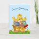 This Easter greeting card is shown with cute little chicks in the egg basket print.