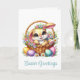 This Easter greeting card is shown with a cute bunny in a basket of flowers art print.
