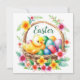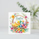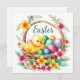 A tropical twist to a traditional Easter design with baby chicken and colorful eggs. The back has been left blank for you to add a personal message.