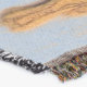 A quality printed throw has its advantages. This is a much finer weave throw than its loopier cousins, and though lighter, it is worth the investment for custom room accessorizing. The back is much prettier than the typical brown, and the fringe on the long sides very vivid, the selvage nicely done. Before photographing, I washed the throw in cold water, delicate, with a thicker woven throw the same size. On tumble dry low, this throw was dry in half the time as the other. This is a very practical quality if you use throws for furniture covers or to wrap up in frequently. The sleekness of the fabric makes it a great layer for accenting or protecting without the feeling of sitting on too much stuff. Perfect for napping or when you feel a light chill coming on. The color printing is beautiful and on this fabric, matched the design and color of my Photoshop image. This is an advantage for blending room fabrics and colors. The fringe on the short sides prints the colors from the design image and therefore varies from the side fringe. I streaked a white fractal line through the plaid pattern to give the illusion of weaving. This printed as crisp as an illusory thread, and put some white in the short side fringe, showing another advantage of print vs loomed- for artistic purposes, line lines, detail, and color integrity can be planned and preserved. My loomed throws have color limitations and more of a needlepoint texture. Print throws reproduce an exact image. The throw felt a little stiff straight out of the package, but this went away in the first delicate wash. Of course I searched the wash water for ink or bleeding and there was none.