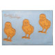 A vintage / antique Happy Easter postcard with three fuzzy yellow felt chicks all in a row. Background in blue. Happy Easter!