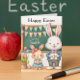 This charming Easter card features a whimsical rabbit teacher and a young girl bunny as the student. The design includes a chalkboard, spring decorations, and tulips, making it a delightful gift from young students or preschoolers to their teachers. It's the perfect way to say "Happy Easter" and show appreciation for a wonderful teacher.