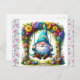 A Cute Postcard To Send For Easter Greetings. Done In Pink Roses With A Floral Gnome On A Garden Swing With Colored Eggs.