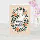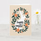 This card features a calm white hare silhouette centered within an oval wreath that feels like an egg-shaped frame, with the greenery curving in close as if in a gentle embrace 🐇. Deep emerald leaves form the main ring, while terracotta-orange blossoms and small white flowers add soft contrast, each tiny bloom marked with a warm golden dot. The background is a creamy beige wash that keeps the scene quiet and cozy, letting the shapes and colors do the talking. Across the hare’s body, the words “happy easter” appear in flowing, connected lettering, placed neatly through the middle so it reads clearly without crowding the figure 🌷. The text is a darker green that echoes the foliage, tying the greeting into the wreath like a shared secret between friends. Subtle shading around a few leaves and petals adds a hint of depth while keeping the overall look smooth and graphic. The wreath’s oval is slightly wider at the sides, with orange blossoms clustered near the upper left and lower right, and smaller white flowers sprinkled between the leaves.