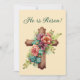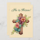 Celebrate the joy of Easter with this beautifully designed card featuring a wooden cross adorned with delicate watercolor flowers in soft pink, purple, and blue hues. The front of the card showcases the uplifting phrase, *"He is Risen,"* capturing the essence of the season's hope and renewal. On the reverse, you'll find an editable, uplifting sentiment, allowing you to add a personal touch for your loved ones. Perfect for sharing heartfelt messages of faith, love, and encouragement this Easter. Whether you're sending it to family, friends, or members of your congregation, this card is a meaningful way to honor the spirit of Easter. Edit text from the product page or to change font style or color, use the design tool.