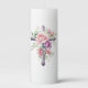 This pillar candle is shown with a watercolor art print of a cross accented with lovely pink roses.