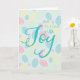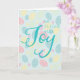 Folded Easter greeting card with editable text inside. Printed with a pastel egg design of pale pink, buttercup yellow and robin's egg blue. Has stylized word art "be filled with Joy". Your choice of several sizes. Look for matching gift bag, tissue and other items in this same design collection.
