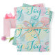 Easter flat wrap in three cute coordinating prints. One sheet has a pastel egg design and stylized word art "be filled with Joy". The second sheet has editable text. Look for the matching gift bag, tissue and other items in this same design collection.