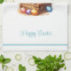 This kitchen towel is shown in white with a festive Easter bunny print.