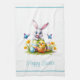 This kitchen towel is shown in white with a festive Easter bunny print.