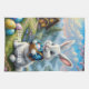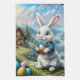 This kitchen towel is shown in white with a festive Easter bunny print.