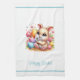 This kitchen towel is shown in white with a festive Easter bunny print.