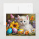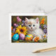 Easter Kitten with Flowers and Painted Eggs Holiday Postcard