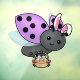 Cute ladybug ready for Easter with bunny ears and an Easter basket filled with decorated eggs.