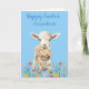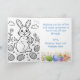 This adorable Easter card has a sweet baby lamb holding a basket of Easter Eggs. Wildflowers are all around him. Card can be personalized for any child. Inside the card is a personal message which is also customizable. At the bottom is decorated eggs amongst wild flowers. The inside left of the card has a coloring page of an Easter bunny with Easter eggs all around, so your little one can have fun coloring after they see the card!