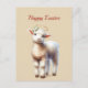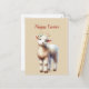 The image features an adorable white lamb with a soft, fluffy coat, standing gracefully. The lamb has a gentle, serene expression with bright eyes and perked ears. A golden halo floats above its head, symbolizing purity and divinity. A small floral arrangement, including white blossoms and green leaves, adorns one side of its head, enhancing the peaceful and sacred feel.