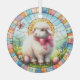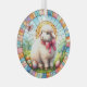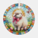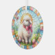 A beautiful stained glass Easter ornament of a cute lamb amongst the pretty colors.