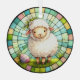 A beautiful stained glass Easter ornament of a cute lamb amongst the pretty colors.