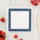 This standard dinner napkin is shown, these have the same rich deep blue and black vine and scroll pattern, soft blue border and a solid white center with no flowers or text.