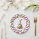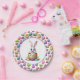 This cute paper plate is shown with a festive Easter eggs and bunny print.