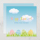 Customizable Easter party / family reunion invitation template with outdoor spring scene - Easter eggs in the grass on pastel colors.