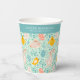 Easter pattern with eggs, bunny, chick, flowers paper cups