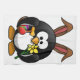 Funny cartoon Easter penguin with eggs and flower.