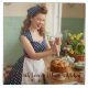 Brighten up your home with this charming personalized Easter Pin-Up ceramic tile! Part of our exclusive Easter Retro Collection, this design features a lovely 1950s-style girl decorating a traditional Easter cake in a sunny vintage kitchen. It’s a perfect decorative piece for your spring interior or a heartwarming gift.