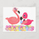 Two cute Easter pink flamingos in a pile of Easter eggs