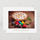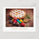 Easter postcard with Italian pastiera cheese pie and colored eggs.