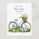 Stylish vintage bicycle featuring a basket brimming with wildflowers. Accompanied by colorful Easter eggs nestled in the grass, evoking a sense of seasonal celebration and rustic charm.