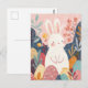 Easter Postcard with Flowers and Easter Bunny