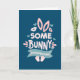 Cute easter pregnancy announcement folded card in blue with the fun saying "some bunny is eggspecting". Surprise your friends and family and let them know you're pregnant and going to be new parents. Featuring bunny ears, baby feet, and a colorful design.
