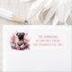Return address labels featuring a watercolor pug with flowers and Easter chocolate eggs. Customizable.