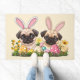 Cute illustration of Pug dogs dressed up for Easter. Perfect for pet lovers or dog parents for Easter.