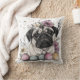 Easter pug watercolor floral throw pillow