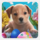 Easter Puppy Flowers and Eggs Square Sticker