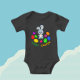 I love this onesie, it's adorable! The material is amazing so soft and the color is a perfect sky blue. When my daughter-in asked me to help with her Baby Shower, I was thrilled. It was co-ed & the theme was Cookie Monster. I had no idea that the whole world was after that big blue Monster. Thank goodness for Zazzle, I got most of the party supplies here. Then I found this onesie! They made my customization so easy. The colors are awesome. I wrote the word "Loved" across the bottom of the Cookie Monster in red letters when I was putting it together. I saw the preview & liked it. But to see it in person, OH, it was fantastic, they do exceptional work! I am so glad that I found this onesie/bodysuit. The production time and shipping were exactly what I was told, which made it easy to plan the party. Packaging was nice as well. If you are looking at this product, look no further, I highly recommend it! I'm certain that I'll be back to "design" whatever my new Grandson "needs.". The printing on the onesie/bodysuit is crisp, and clean. With perfect colors that blend well with the blue background of the basic material. We are so happy with how it came out.