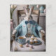 Easter rabbit in a blue coat and bow tie postcard