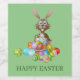 Easter bunny with baskets of colored eggs. Personalized card to present as a gift to your loved ones.