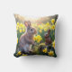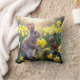 A cute rabbit with a bouquet of daffodils is in love with a chocolate Easter bunny in a beautiful spring garden, with floating love hearts above its head.