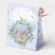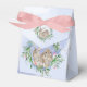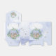 Favor box. Easter bunnies on a cloud with silver stars. The color of the ribbon can be changed, choice of white, black and purple.