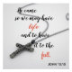 A light background, with a cross on a chain. With a quote from John 10:10 reading, "He came so we may have life and to have it to the full."