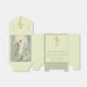 This beautiful image of the Resurrection of Jesus is on the back and the front include a gold cross with lilies and a beautiful Easter prayer.