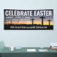 Advertise your Easter Service Times with this large banner featuring the three crosses with a beautiful sunrise background.