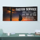 Advertise your Easter Service Times with this large banner featuring a cross with a beautiful sunrise background.