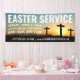 Advertise your Easter Service Times with this large banner featuring three crosses with a beautiful sunrise background.