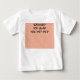 This baby t-shirt has an Easter design of split circles on lines in green, blue, and purple on a field of orange.